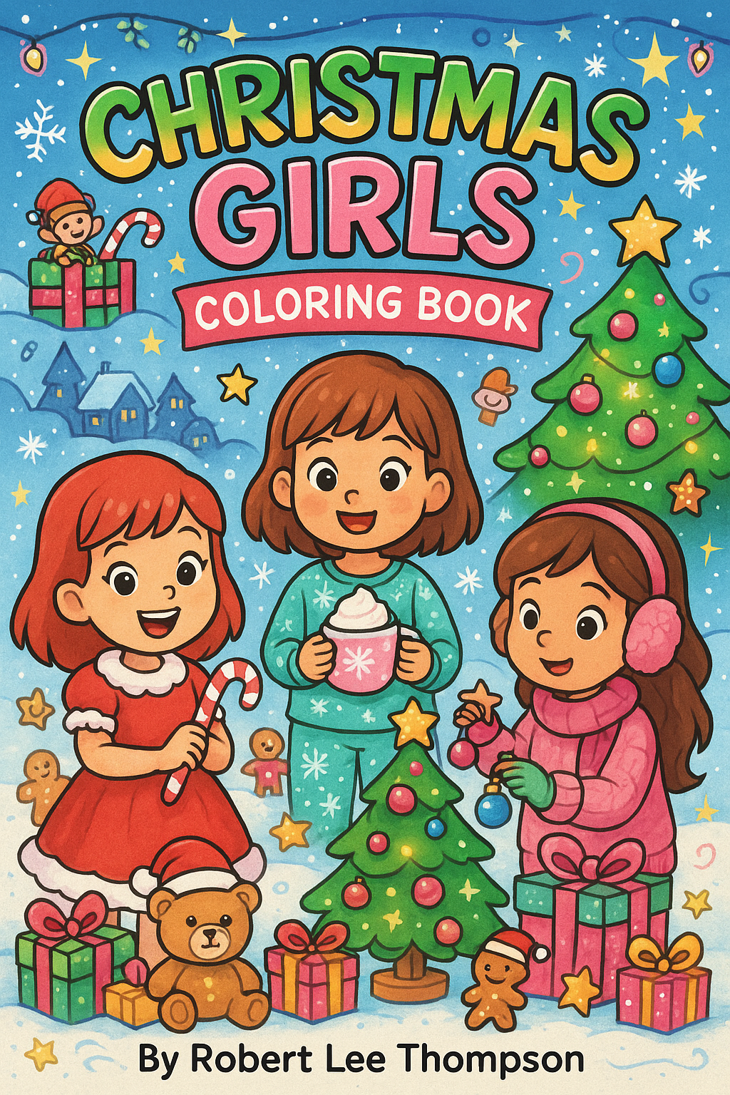 The Christmas Girls Coloring Book is packed with adorable holiday scenes designed just for creative young artists. Inside, girls ages 4–12 will discover 50 festive, fun, and heart-warming illustrations featuring cozy pajamas, Christmas dresses, hot cocoa moments, decorating trees, wrapping gifts, playing in the snow, and more!