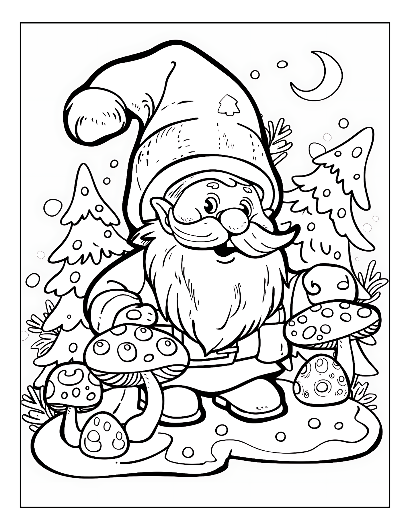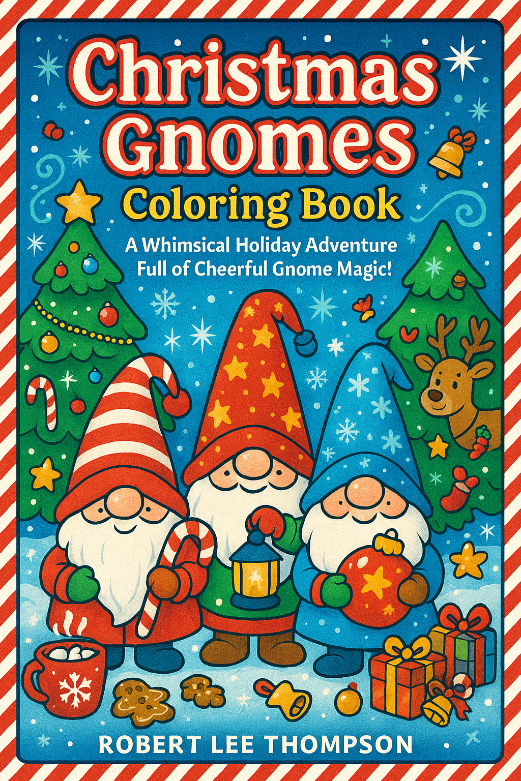 This Christmas Gnomes Coloring Book brings the magic of the season to life with adorable gnomes, snowy forests, glowing lanterns, candy canes, presents, and cheerful winter creatures. From cozy scenes to silly moments, every page is packed with charm and Christmas joy.